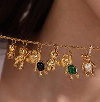 おしゃれでシンプルなかわいいクマペンダントゴールドステンレス鋼テディベアチャームダイヤモンド付き3Dベアペンダントジュエリー作り