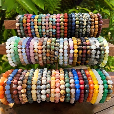 4mm 6mm 8mm Matte Edelstein Armband Einfache Heilung Kristall Rosenquarz Lila Amethyst Stein verstellbares Armband