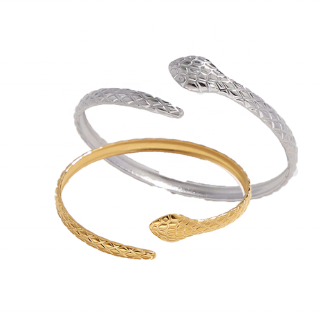 Hete Geometrische 18K Vergulde Slangenvorm Rvs Opening Manchet Armband Voor Dames Heren Sieraden