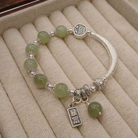 Natuurlijke Jade 925 Sterling Zilveren Enkele Lus Good Luck Armband Hapline Steen Hanger Voor Dames Heren