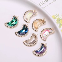 จี้แก้วคริสตัลรูปพระจันทร์เรียบขนาด 28 มม. กรอบทองเหลืองชุบทอง สำหรับทำสร้อยคอ DIY อุปกรณ์ทำเครื่องประดับ