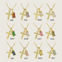 Tôn Giáo Chữ Thập Vòng Cổ/Vàng Chữ Thập Hình Học Hình Chữ Nhật 12 Tháng Cầu Vồng Đá Quý Birthstone Vòng Cổ Cho Phụ Nữ Người Đàn Ông